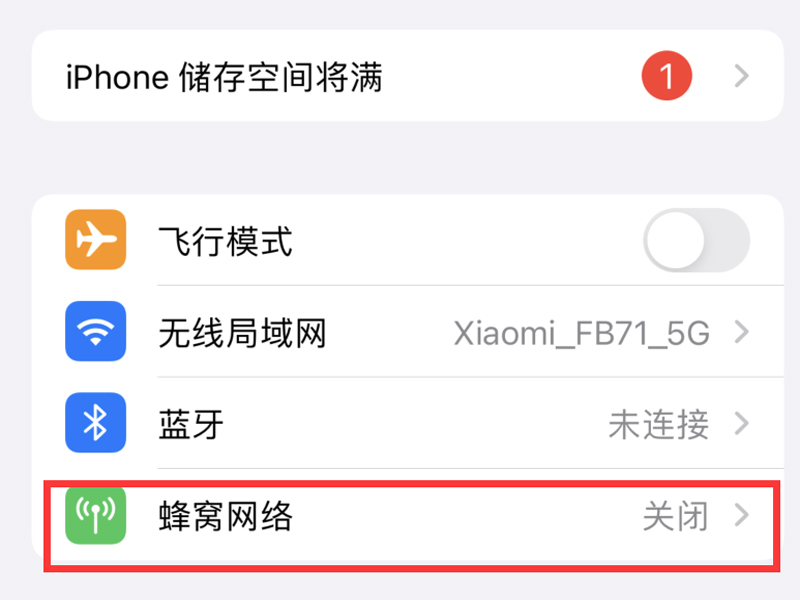 1、打开手机的设置,点击“蜂窝网络”的按钮,进入蜂窝网络的页面中。