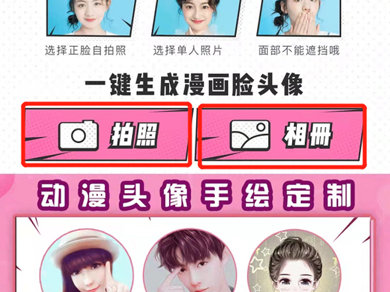 3、点击“相册”或者“拍照”,把自己的图片放上来即可生成卡通形象。