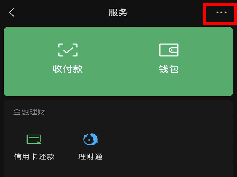 1、打开微信,进入“服务”界面后,点击右上角的“…”,进入“支付管理”界面。