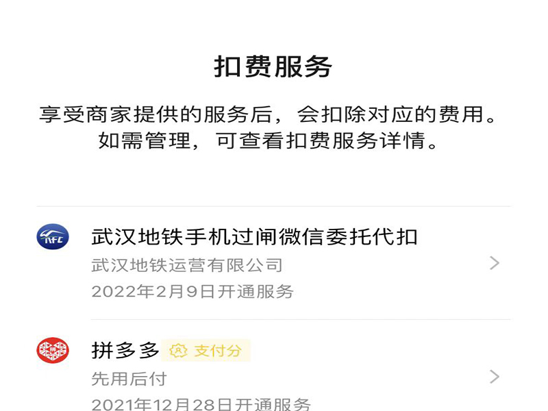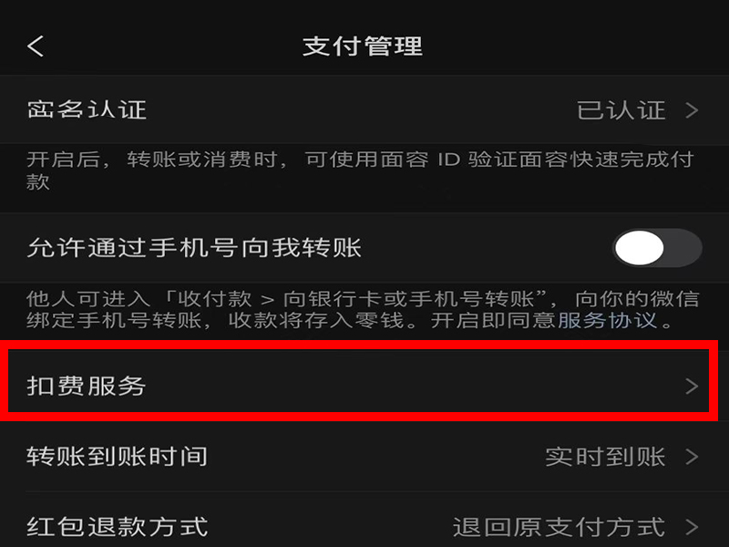 2、进入“支付管理”界面后,点击扣费服务,进入“扣费服务”界面。