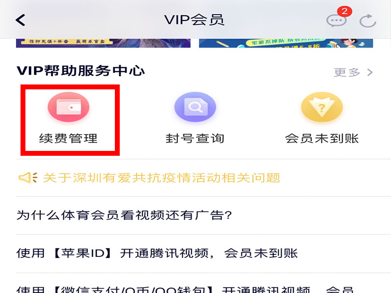 1、打开腾讯app,进入“vip会员”界面,找到并点击“续费管理”,进入“续费与开通记录”界面。