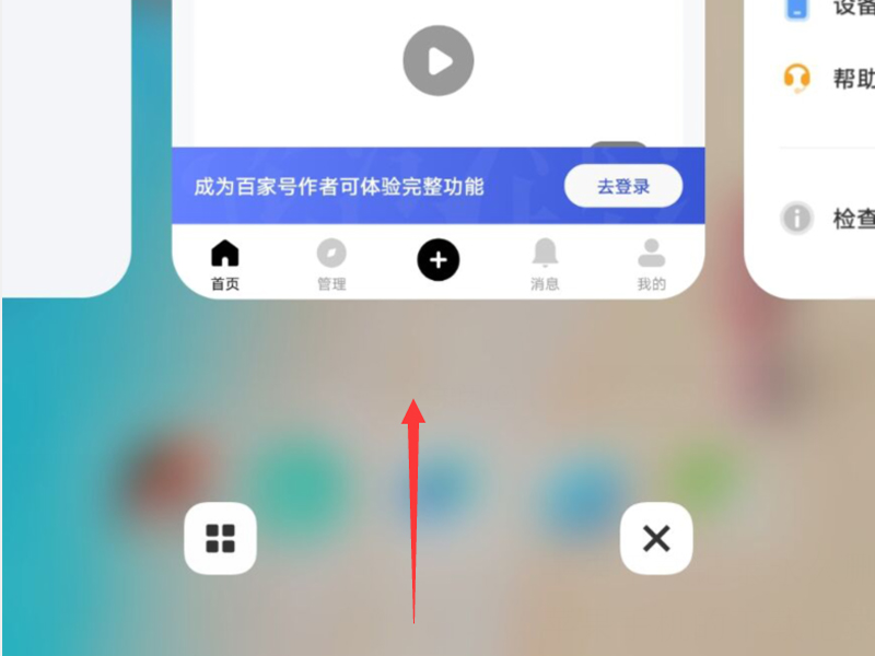 1、打开手机,用手指从手机屏幕的底部向上滑动,这一过程中手指不要松开,呼出后台多任务界面。