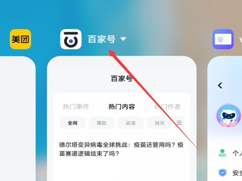 2、找到需要分屏的应用,点击应用左上角的倒三角符号,打开工具栏。