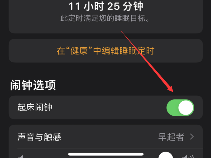 苹果手机系统有一个睡眠起床闹钟的功能,这个闹钟是无法删除的,但是可以进行关闭,操作步骤如下: