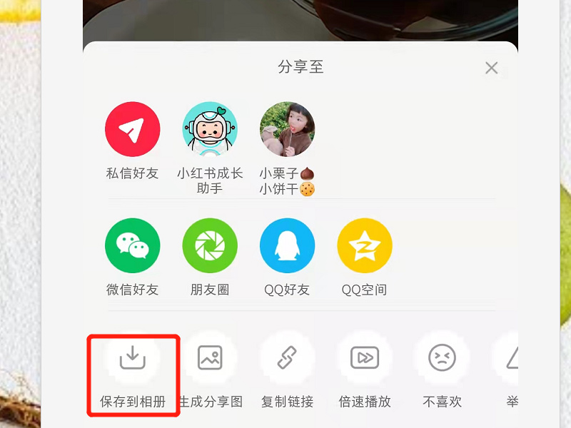 3、选择右上角的分享按钮后,选择下方的保存到相册即可将视频提取到手机上。