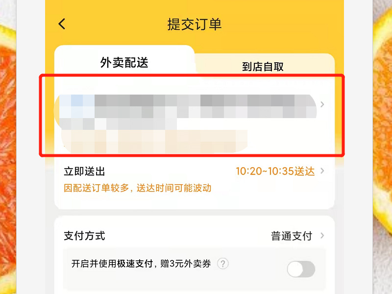 4、输入别人的收货地址后,按照平时点外卖的步骤下单,然后在提交订单界面修改收货地址。