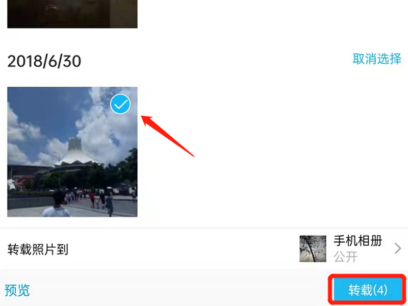5、选择需要转移的照片,点击“转载”,这些照片即可转载到自己的相册。
