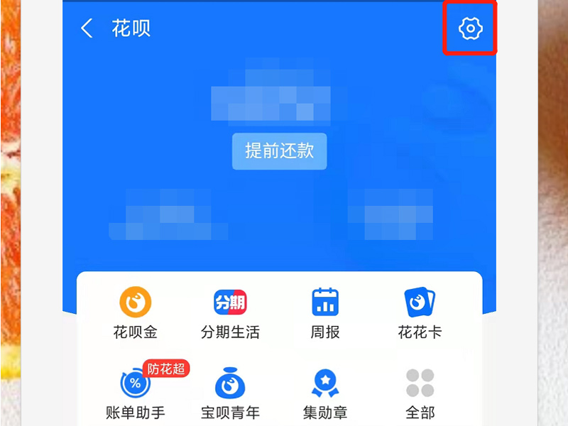2、进入花呗详情界面后,选择右上角的齿轮进入花呗设置界面。