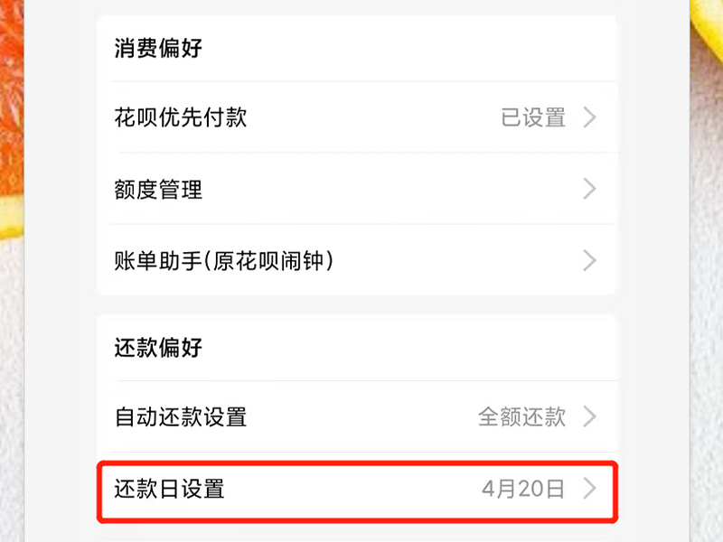 3、进入花呗设置界面后,选择还款日设置,然后修改需要还款的日期即可。