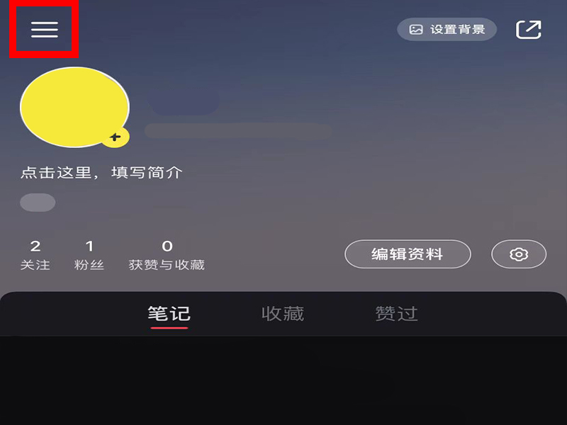 1、打开小红书,点击进入“我”的界面,再点击右上角的三条横线,进入“功能栏”界面。
