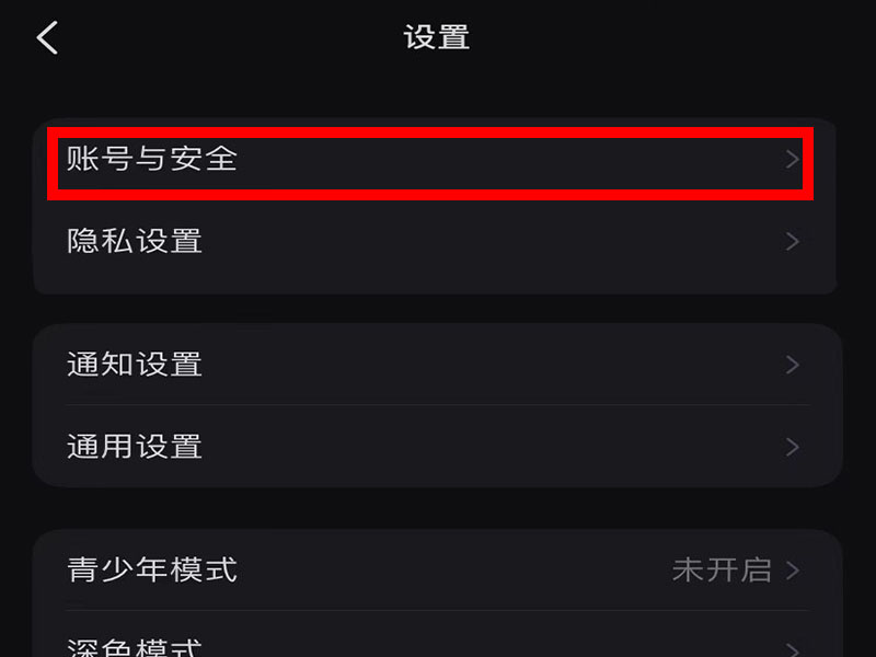 3、进入“设置”界面后,点击“账号与安全”,进入“账号与安全”界面。