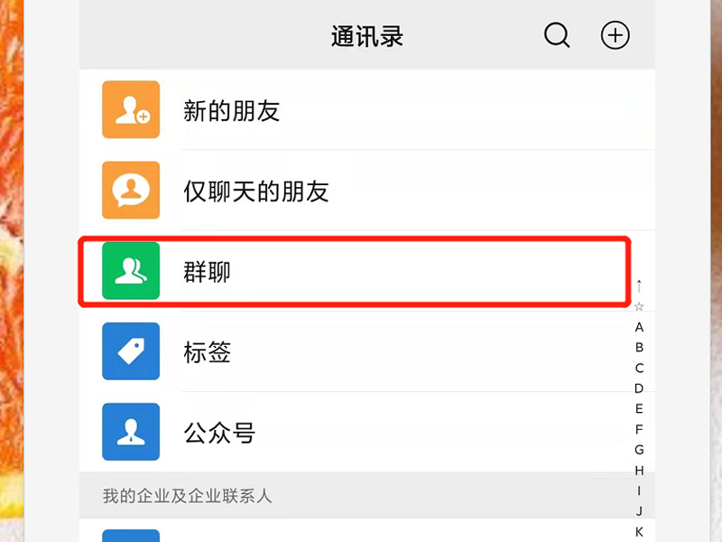 1、打开微信app,点击下方的通讯录,再点击群聊进入群聊界面。