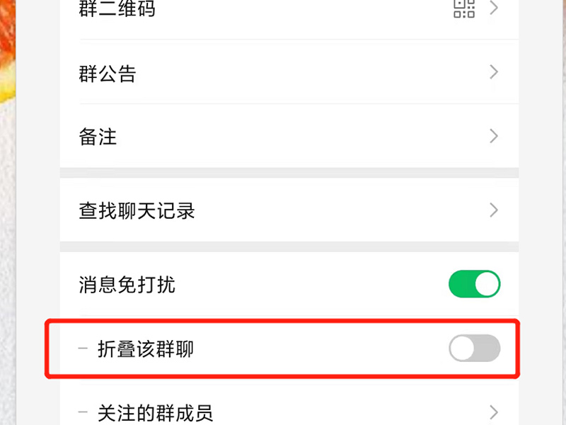 3、进入群聊资料界面后,选择折叠该群聊即可。