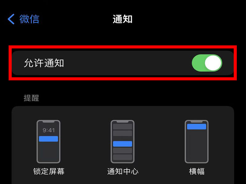 3、进入“通知”界面后,将“允许通知”关闭即可。