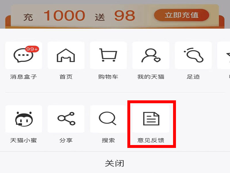 2、进入“功能栏”界面后,点击“意见反馈”,进入“意见反馈”界面。