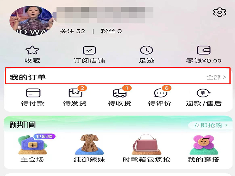 1、打开淘宝app,在我的淘宝页面上,点击“我的订单”,进入我的订单页面。