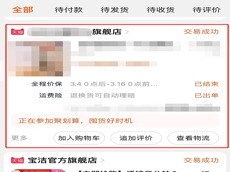 2、在我的订单页面上,选择需要退货的订单,点击进入订单详情页面。