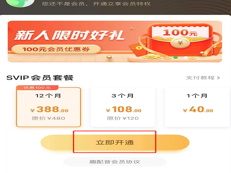 3、在弹出提示开通会员的窗口上,点击“立即开通”,即可进入会员开通页面。