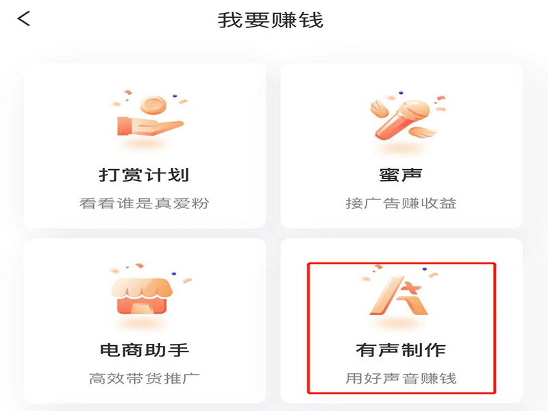 3、在我要赚钱页面上,点击“有声制作”,进入喜马拉雅有声制作平台。