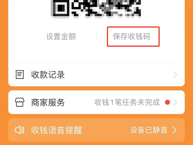 2、点击收款码下方的保存收款码,将收款码保存至相册。