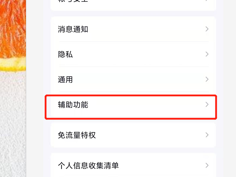 2、进入设置界面后,点击辅助功能,进入辅助功能设置界面。