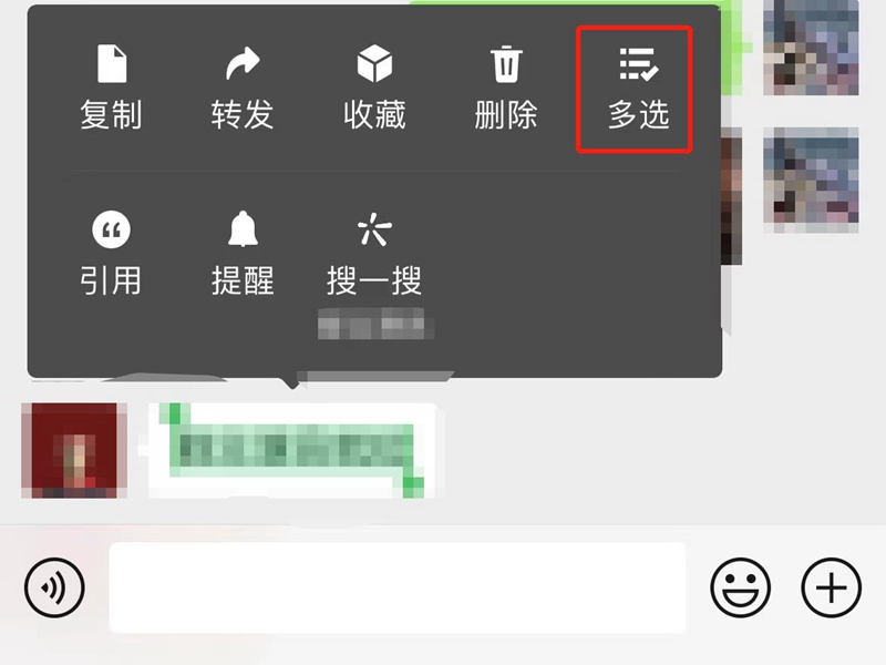 1、打开微信app,进入聊天窗口,长按需要转发的微信记录,选择多选。