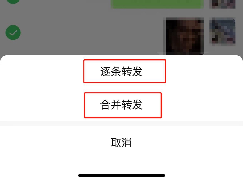 2、在聊天记录前的进行勾选,点击下方转发功能,选择逐条转发或者合并转发都可以进行发送。