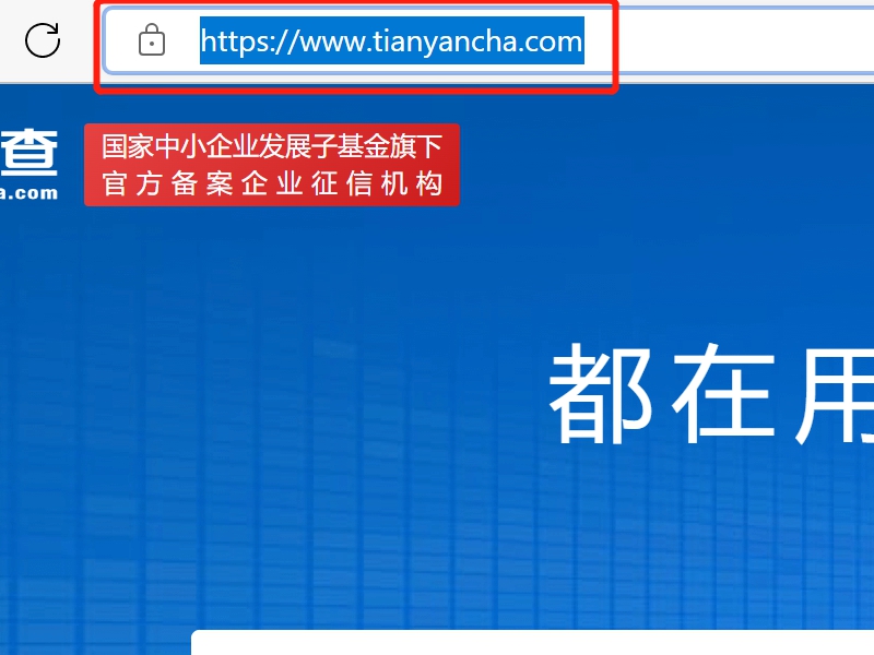 1、电脑端浏览器在地址一栏输入www.tianyancha.com,进入天眼查官网。