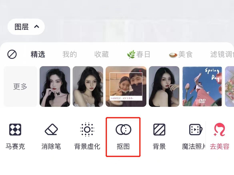 1、打开美图秀秀app,选择图片美化,添加证件照,选择工具栏下方的抠图功能。