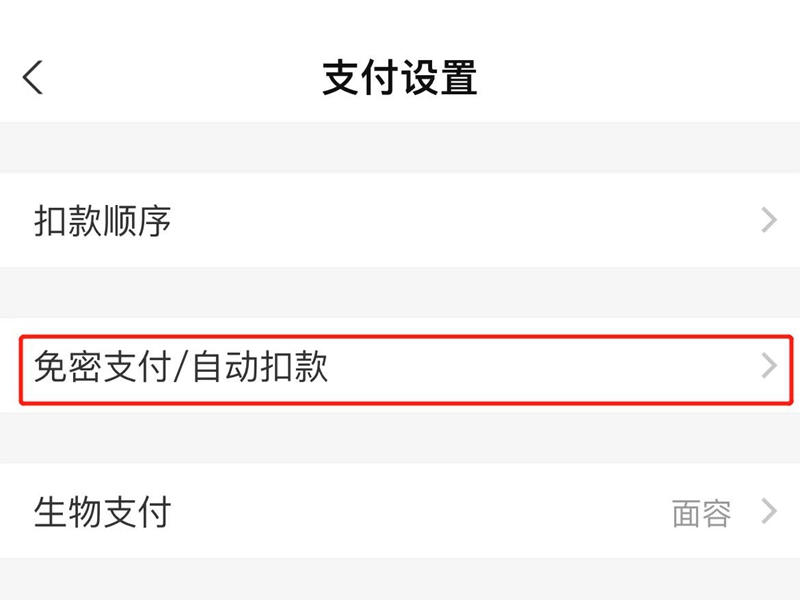 2、点击支付设置,选择“免密支付/自动扣款”进入。