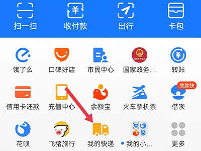 1、打开支付宝app,在主页的信息栏中点击“我的快递”,进入页面。