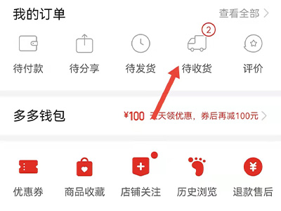 3、在我的页面中点击“待收货”,进入页面。