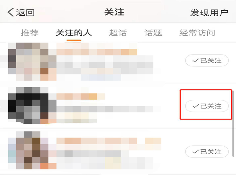 取消关注可以直接在主页所关注的列表中,找到需要取消关注的用户,点击取消关注即可。以微博取消关注博主为例,具体操作如下: