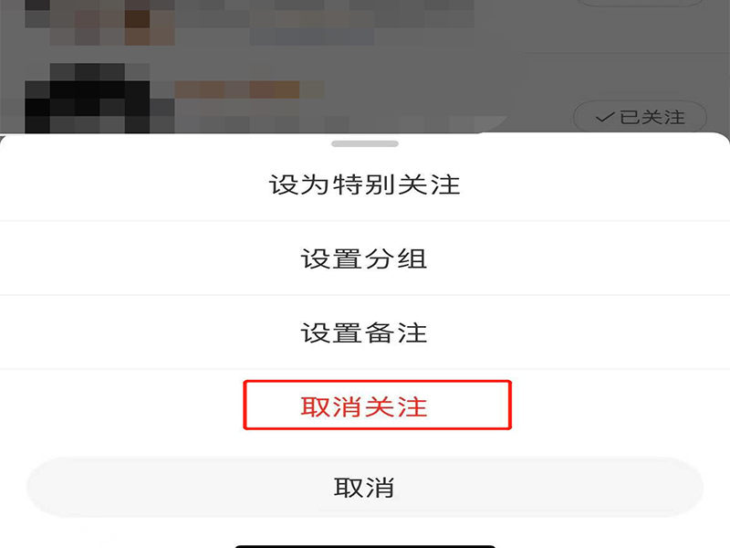 3、在已关注工具栏中,点击“取消关注”,即可取消关注该博主。
