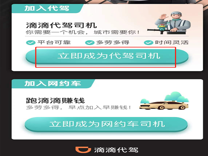 目前主要的代驾平台有滴滴代驾、e代驾、优优代驾等,其中以滴滴代驾的使用率最高,而申请加入滴滴代驾平台的操作步骤如下: