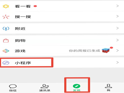 1、打开微信app,切换到“发现”页面,打开下方的“小程序”。