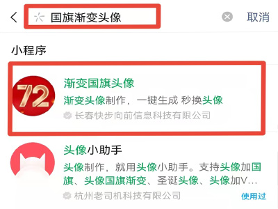 可以通过微信小程序“渐变国旗头像”或“头像不小助手”来设置国旗渐变头像。用“渐变国旗头像”小程序设置国旗头像的操作方法如下: