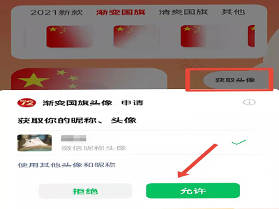 4、点击“获取头像”,点击“允许”按钮,系统会自动生成国旗渐变头像。