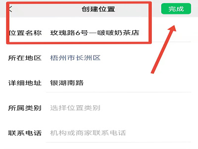 5、点击“创建新的位置:玫瑰路6号-啵啵奶茶店”,点击“完成”即可。