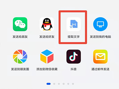 2、点击左下角的“分享”图标,选择“提取文字”选项。