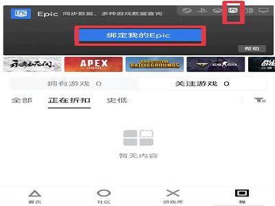 2、选择“EPIC”图标,点击“绑定我的Epic”。