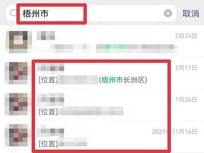 3、在搜索框输入位置信息,如“梧州市”,点击“搜索”,即可查看位置记录。