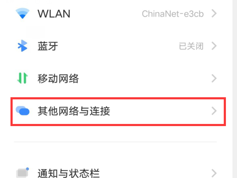 1、打开手机的设置,点击“其他网络与连接”按钮,进入其他网络与连接的页面。