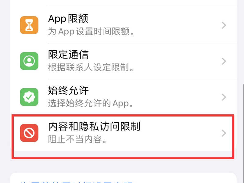 2、点击“内容和隐私访问限制”按钮,进入内容和隐私访问限制的页面。