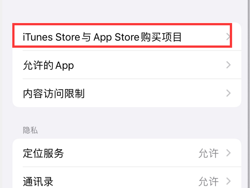 3、点击“itunes store与app store购买项目”按钮,进入其设置的页面。