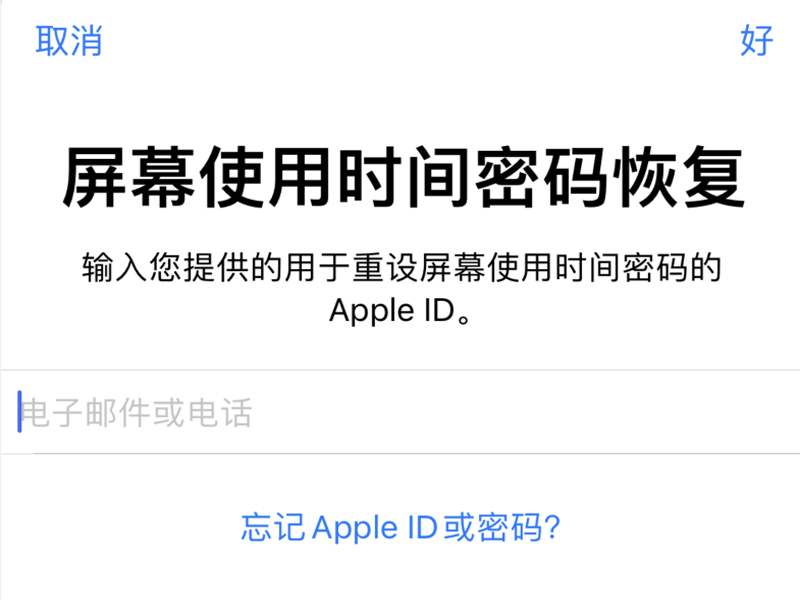 如果苹果手机的屏幕使用时间密码忘记了,可以用苹果id来进行找回密码,具体的操作步骤如下: