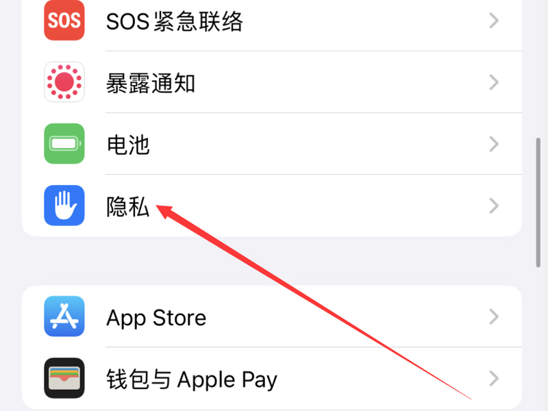 1、打开手机的设置,点击“隐私”按钮,进入隐私设置中。