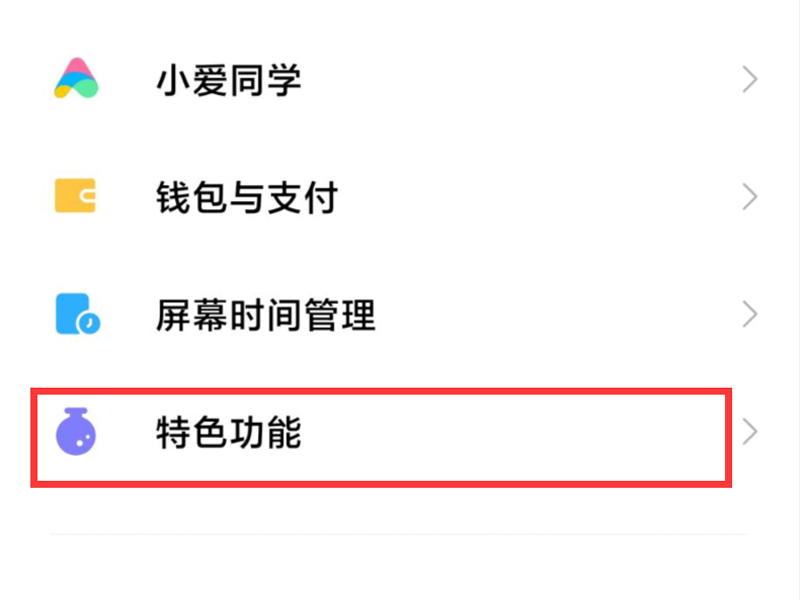 1、打开手机的设置,点击“特色功能”按钮,进入特色功能设置中。