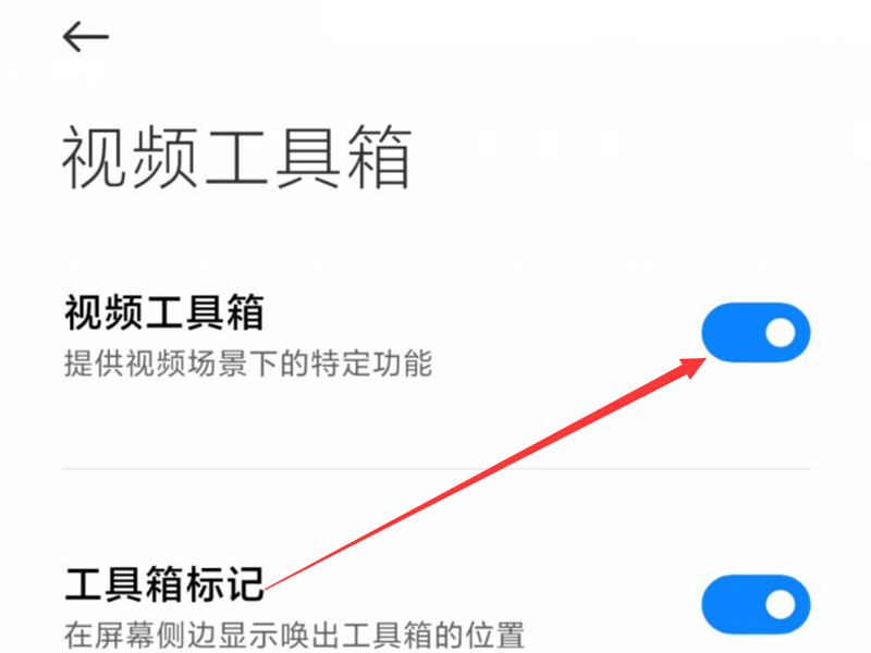 3、进入页面后把“视频工具箱”后面的开关开启即可。