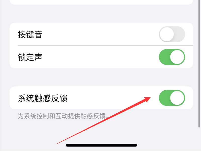 2、下滑页面,找到“系统触感反馈”的按钮,把这个按钮打开即可。